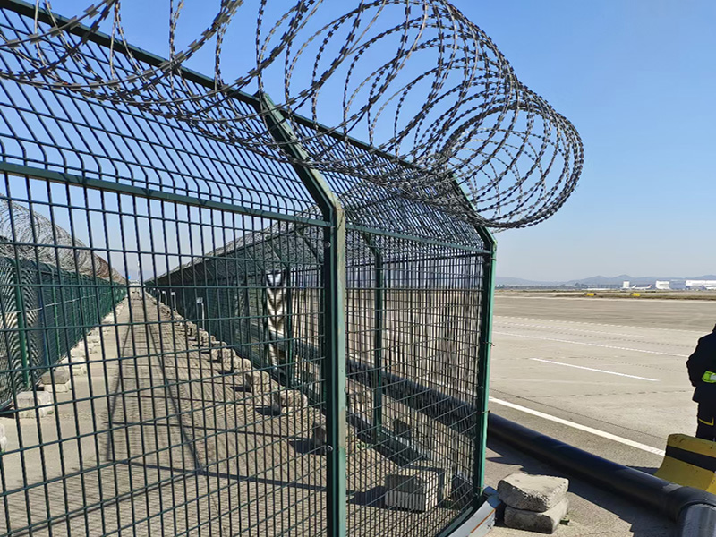 機(jī)場護(hù)欄網(wǎng)是一種采用低碳鋼絲焊接而成的網(wǎng)片 立柱 刺鐵絲(可選) 斜撐(可選)連接而成的護(hù)欄網(wǎng)產(chǎn)品。本產(chǎn)品美觀大方、防腐性好、易保養(yǎng)、防攀爬能力強(qiáng)。主要適用于機(jī)場周圍的隔離防護(hù)、美化及防翻越工程。本產(chǎn)品采用組裝式整體框架結(jié)構(gòu),具有堅(jiān)固耐用、利于施工、安裝方便、快捷的特點(diǎn)。